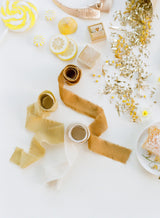 The Golden Collection consists of Cream, Honey, and Oro. Our Classic Ribbon Collections are the perfect color combination for your wedding, event, photoshoot, workshop, or styling kit. The Classic Ribbon is soft in hand, and more substantial in weight than most silks. Because of the texture, the sheen is more subtle, creating a matte-like finish.