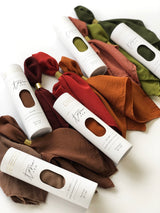 Not sure which color scarf is right for you? You can purchase a sample of our Silk here so you can touch, feel, and see the rich color in person!