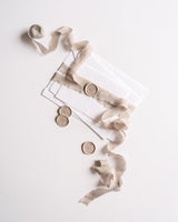 Our Silk Classic Ribbon always sits at the head table as part of our Signature Color collection. Made from 100% mulberry silk, this hand-dyed, medium-weight ribbon has a dreamy drape, oh-so-subtle sheen, and matte finish. Plus, it’s got a hand-frayed edge and a boujee crinkled texture that is sure to break hearts.