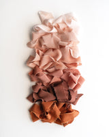 Our Silk Classic Ribbon always sits at the head table as part of our Signature Color collection. Made from 100% mulberry silk, this hand-dyed, medium-weight ribbon has a dreamy drape, oh-so-subtle sheen, and matte finish. Plus, it’s got a hand-frayed edge and a boujee crinkled texture that is sure to break hearts.