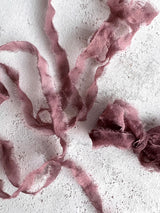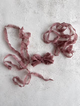 Item #105 is a Silk Ribbon Sheer Trim in our Dusk color. It's made with 100% Silk Chiffon, has a lightweight feel with a sheer matte texture. This item ships in as-is condition, without our signature packaging, making it possible for us to offer a deeper discount.