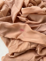 Item #509 is a Silk Semi-Sheer styling textile in a rose gold color. It's made with 100% Silk, has a lightweight feel with a matte texture. This is a one-of-a-kind, single batch color, and will not be available for purchase after selling out. This item ships in as-is condition, without our signature packaging, making it possible for us to pass along a deeper discount to you.