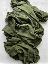 Item #530 is a Silk Semi-Sheer Chiffon in our Olive color. It's made with 100% Silk, has a lightweight feel with a matte texture. This is a one-of-a-kind, single batch fabric weight, and will not be available for purchase after selling out. This item ships in as-is condition, without our signature packaging, making it possible for us to pass along a deeper discount to you.