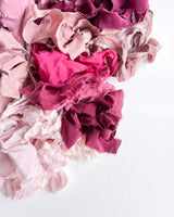 Our Silk Ribbon Remnant bundles are the product of our single-batch, one-off ribbon dyeing process, they’re as one-of-a-kind as it gets. No re-dos or re-orders. Unique and perfect for one-of-a-kind projects, from florals and stationery styling to gift wrapping and weaving.