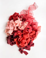 Our Silk Ribbon Remnant bundles are the product of our single-batch, one-off ribbon dyeing process, they’re as one-of-a-kind as it gets. No re-dos or re-orders. Unique and perfect for one-of-a-kind projects, from florals and stationery styling to gift wrapping and weaving.