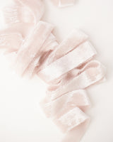 Meet our Silk Velvet Ribbon: Buttery soft, it’ll melt the coldest of hearts. It’s our heaviest-weight ribbon, mixed with rayon for a sexy texture. Our vow? Soft, romantic colors, but make them luxe, thanks to a velvety sheen on one side and hand-frayed raw edges. Well, color us intrigued.
