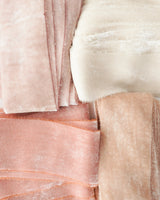 Meet our Silk Velvet Ribbon: Buttery soft, it’ll melt the coldest of hearts. It’s our heaviest-weight ribbon, mixed with rayon for a sexy texture. Our vow? Soft, romantic colors, but make them luxe, thanks to a velvety sheen on one side and hand-frayed raw edges. Well, color us intrigued.