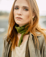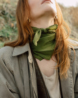 Each scarf is approximately 23 inches x 23 inches and comes packaged in our signature sustainable paper tube with a Brass Scarf Slide and our How To Scarf Style Guide.